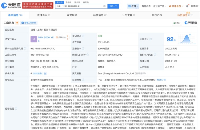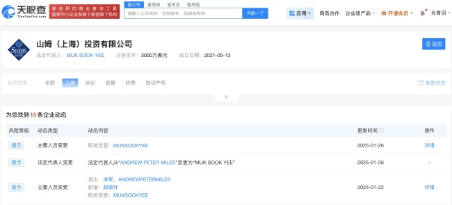 据报道,山姆会员商店的选品问题引发广泛关注,不少网友吐槽山姆下架了太阳饼、米布丁、低糖蛋黄酥等回购率高、性价比高的商品。同时,对其新上架的低糖好丽友派、溜溜梅等商品表示不满意,质疑山姆选品质量下滑。公开信息显示,山姆是沃尔玛旗下的高端会员制商店。第三方投诉平台显示,“山姆”关键词涉及11492条投诉。天眼查App显示,山姆(上海)投资有限公司成立于2021年5月,法定代表人、董事长为MUK SOOK YEE,注册资本3000万美元,该公司直接持有24家企业股权,均为存续状态。从成立时间看,山姆(上海)投资有限公司今年对外投资7家公司,注册资本合计2100万美元,涉及广东、北京、江苏等地。风险信息显示,山姆关联公司上海真如山姆超市有限公司、沃尔玛(浙江)百货有限公司宁波清河路山姆会员商店等现存多条行政处罚信息,处罚事由包括以不合格产品冒充合格产品;生产、销售以不合格产品冒充合格产品;制售不符合质量标准的商品行为及其从属等。