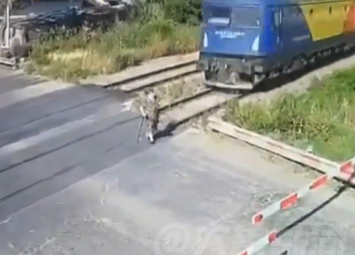 罗马尼亚老妇无视警告横穿铁路被撞亡 目击者称当时铁路道口栏杆已放下