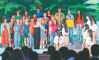 中美青少年在“鼓岭缘”中美青少年合唱周开幕式上共同演唱。