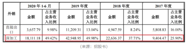 公司外销包括直接出口和转厂出口(进料深加工结转),其中主要以转厂出口为主,直接出口至其他国家的比重较小。
