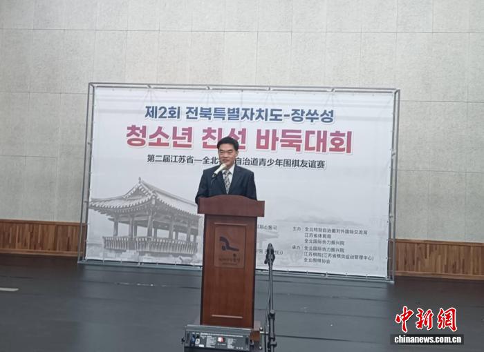 当地时间7月29日,第二届江苏省—全北特别自治道青少年围棋友谊赛在韩国全州市举行。图为中国驻光州总领事顾景奇致辞。中国驻光州总领事馆 供图