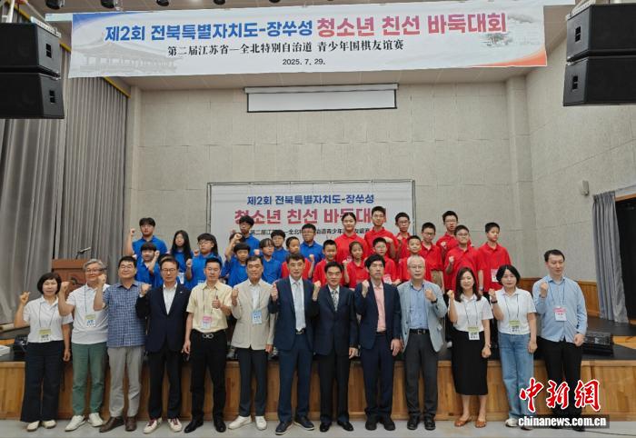 中新网首尔7月30日电 (记者 刘旭)中新网记者30日自中国驻光州总领事馆获悉,第二届江苏省—全北特别自治道青少年围棋友谊赛29日在韩国全州市举行,中国驻光州总领事顾景奇出席并致辞。江苏棋院副院长吴佳明、全北国际关系大使李光镐、全北围棋协会会长李元得、韩国著名围棋选手李昌镐,以及来自两地的20余名青少年选手参加。