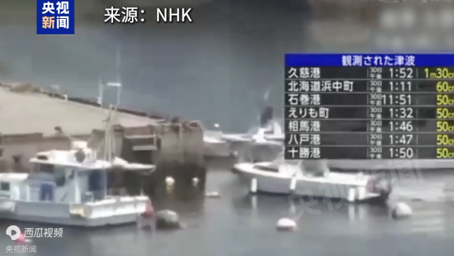 7月30日,俄罗斯堪察加半岛地震后,日本岩手县久慈港记录到高达1.3米的海啸。