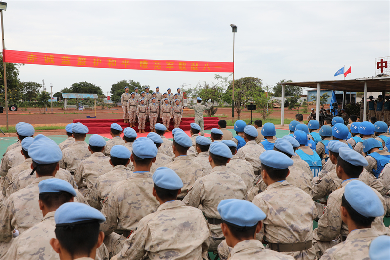 中国赴南苏丹(瓦乌)维和工兵分队举办庆祝八一建军节主题歌咏比赛