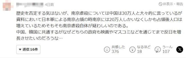 近期,中国暑期档电影《南京照相馆》打破了近三年暑期档战争片首映日纪录。该片以南京大屠杀为题材,引起了一些日本媒体的关注。然而,在这些报道的评论区,许多留言质疑南京大屠杀的真实性,甚至有人认为这是“中国官方支持的反日宣传”。