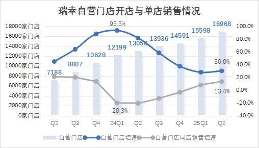 直到外卖大战开打,当一众中小商家频频爆单之际,瑞幸咖啡反而因门店密集,能够最大化承接需求。今年前两个季度,瑞幸咖啡自营店同店销售额增速持续放大,分别为8.1%与13.4%,去年同期分别下降20.3%、20.9%。
