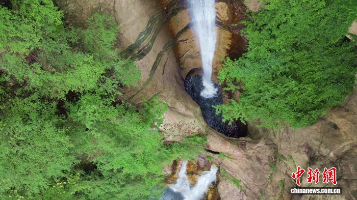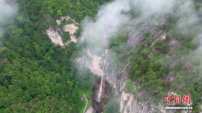 近日,陕西西安遭遇持续高温天气。位于秦岭腹地的太平国家森林公园内“飞瀑”壮观迷人,山间草木葱茏,不少游人前来避暑、游玩,享受独属秦岭山间的“清凉感”。图为夏日的秦岭“飞瀑”景观。 任颖超 摄