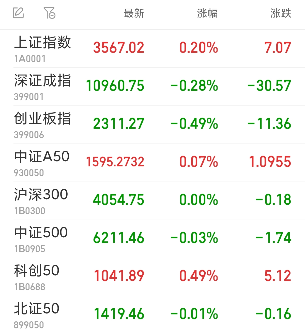 中新经纬8月4日电 周一早盘,A股三大指数低开后走势分化。截至午间收盘,上证指数涨0.20%,报3567.02点;深证成指跌0.28%,报10960.75点;创业板指跌0.49%,报2311.27点。