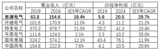 近五年来无论是收入端还是利润端,思源电气的复合增速都是行业内的佼佼者。