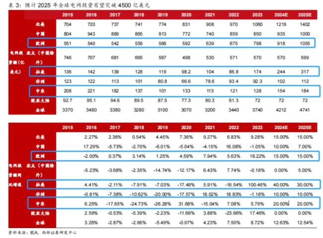 根据西部证券的数据,2024年全球电网投资预估可达4,212美元,同比增长12.6%,预计2025年还将进一步提升至4,741亿。