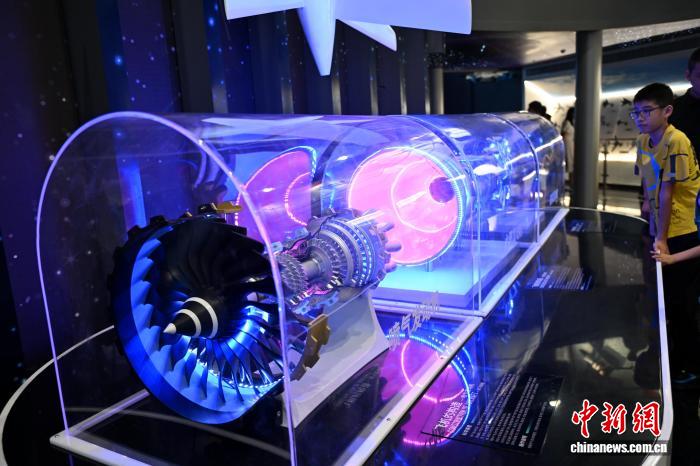 图为各式飞机发动机吸引参观者。中新社记者 吕明 摄
