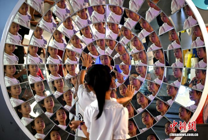 图为小朋友体验光影空间。中新社记者 吕明 摄