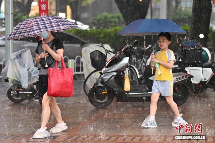 图为市民雨中出行。中新社记者 陈骥旻 摄