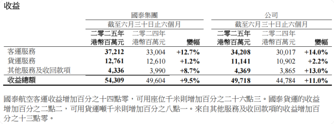 具体来看财报,今年上半年国泰航空客货运业务收入和运量均有所增长。国泰航空客运收益达到342.08亿港元,同比增长14%;运载乘客1360万人次,同比攀升27.8%。而在货运业务方面,国泰货运上半年实现收入111.41亿港元,同比微增2.2%;货物运载量达到80.1万吨,比去年增幅达11.4%。整体载货吨数增加11.4%至80.1万吨,运载率为58.6%,而2024年上半年为59.9%。