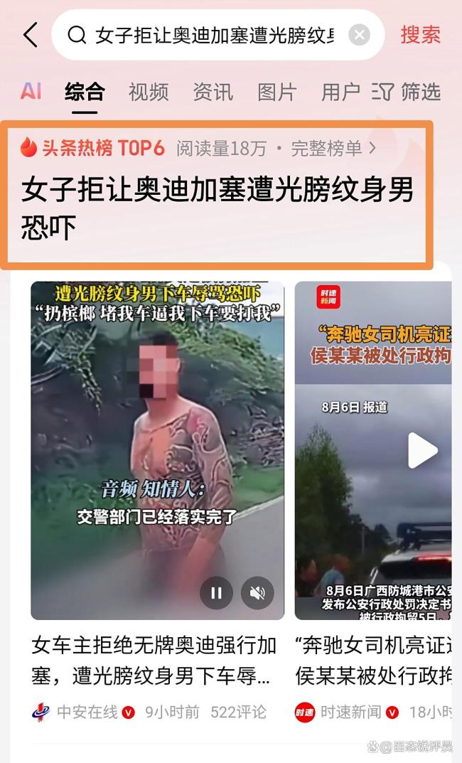 女车主拒绝奥迪强行加塞 遭光膀纹身男下车辱骂恐吓