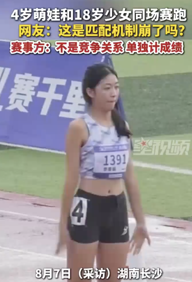 4岁萌娃和18岁女孩同场赛跑,官方:单独计成绩