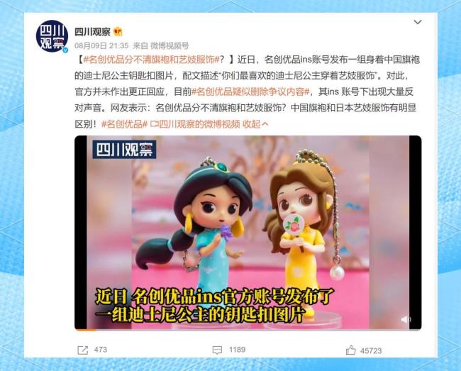 名创优品在西班牙的Instagram账号上发布了一则关于“公主系列公仔盲盒”的帖文,其中中国旗袍公仔被误译为“日本艺伎”。此举引发了大量网友的强烈反对。名创优品立即采取行动,在收到网友反馈后,公司总部要求西班牙代理商团队删除争议贴文,并对当地社媒代理运营机构进行了处罚,决定终止与其的合作关系。官方致歉声明中,名创优品深刻反思,并承诺采取有效措施确保此类问题不再发生。公司强调,将加强全球代理商体系的管理,努力传播中国传统文化,以切实保障此类问题不再重演。