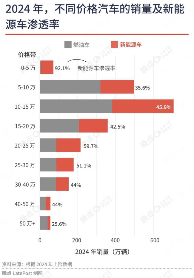 说到蔚来,先看几个数据:目前蔚来品牌最便宜的车型是ET5和ET5T,其官方指导价为29.8万元(姑且不算BaaS方案和市场促销)。而根据对全国新车上险数据的统计,2024年30万以上的新车销售,占全部销售总数的11.5%,新能源车的这个比例会更少一点,仅为10.4%。
