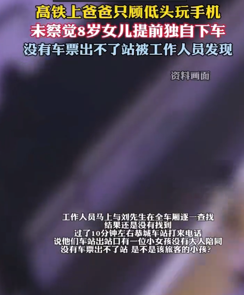 高铁上爸爸沉迷手机 未察觉女儿已独自下车