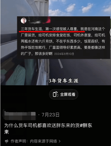 实际上,这并不是胖东来第一次因人性化服务受到货车司机的好评。此前,有司机表示在胖东来装货时第一次感受到被尊重。除了安排食堂吃饭外,还提供司机休息室。这位司机感叹道,如果所有地方都像胖东来这样就好了。