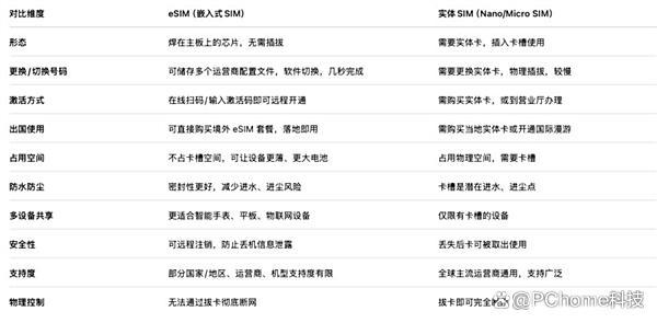 在海外市场,部分高端手机已较早引入eSIM方案,用户可在线购买并激活境外运营商套餐,同时保留原有号码接收短信和验证码,减少携带多张实体卡的不便。取消实体卡槽也为手机硬件设计带来空间优化,腾出的机身内部空间可用于增加电池容量、改善散热结构或提升摄像模组规格。减少物理开孔还有助于提升防水防尘能力。安全性方面,嵌入式eSIM难以被物理移除,可在一定程度上增强防盗追踪功能。