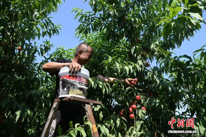 中新网运城8月15日电 (李庭耀 李泱南 杨秀文)夏末秋初,山西运城闻喜县河底镇坡申村水果种植基地,两万余棵果树遍布山岭,鸡心果、珍珠枣油桃等20余种水果挂满枝头。昔日荒岭如今瓜果满枝,一个集标准化种植、休闲采摘、现代储存于一体的水果生产基地,成为激活乡村经济、带动百姓增收的“新引擎”。