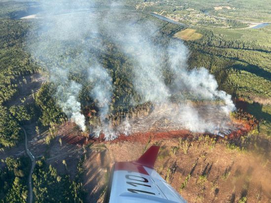 这是7月30日航拍的加拿大不列颠哥伦比亚省西北部一处野火现场。新华社发(加拿大不列颠哥伦比亚省野火管理局供图)