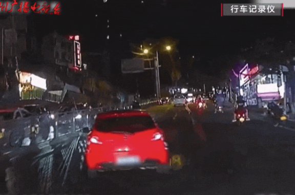 行车记录仪视频显示,当时大巴车在新村路口等红绿灯,前方是一辆红色小轿车。只见绿灯亮起后其他车辆陆续离开,可红色小轿车却原地不动,时间有10多秒长。发现情况不对,大巴车司机按喇叭提醒对方,不料这却引起小轿车司机的不满。