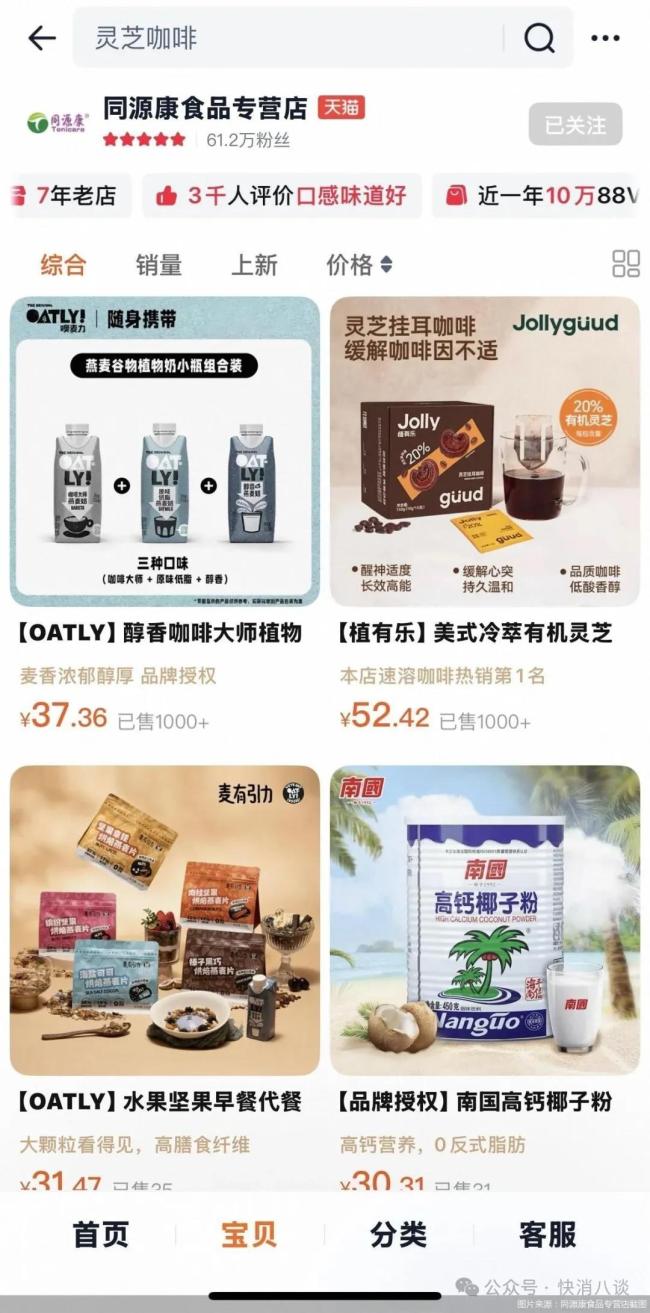 天猫平台显示,“同源康食品专营店”为七年老店,有61.2万粉丝,店铺内统一、澳牧、OATLY、乐荷等品牌产品在售。客服表示,“店铺目前是独立运营,之前确实作为娃哈哈的天猫旗舰店存在过,但现在店铺名称和运营都是独立的”。