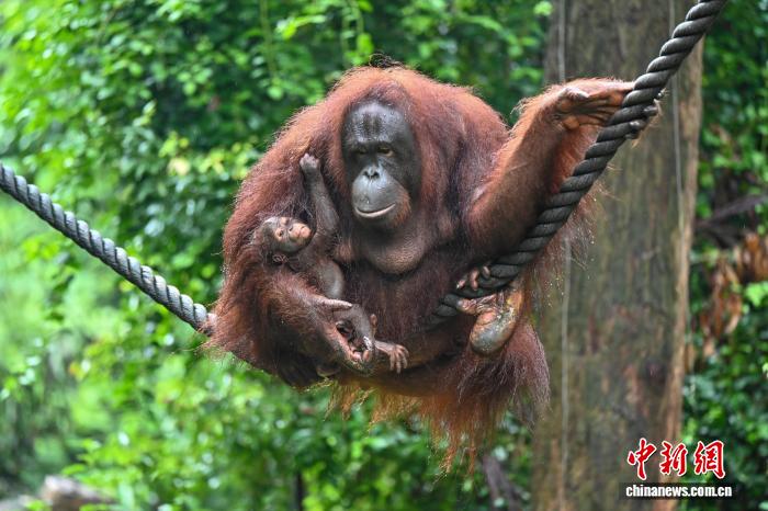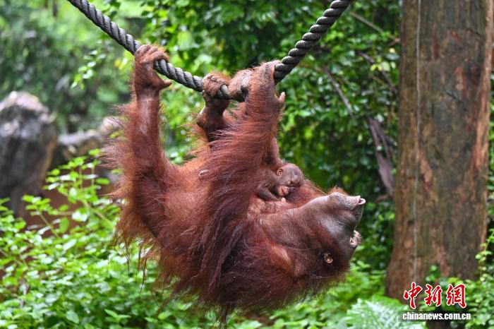 广州长隆红毛猩猩喜添“猩”丁