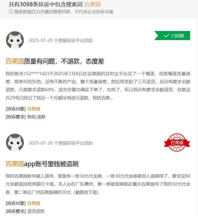 “黑猫投诉”平台显示,包含搜索词“百果园”的相关投诉超3000条,其中大部分都是水果质量及客户服务的问题;近期有消费者投诉表示,“在门店购买荔枝时店员声称新鲜到货,但买回家后打开发现荔枝已严重发霉,当天拿回店内,店员态度恶劣毫无歉意”。