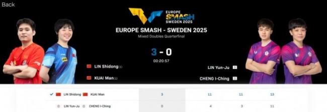 林诗栋蒯曼闯入混双四强 强势晋级半决赛