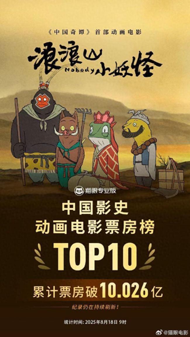 2025年暑期档电影总票房(含预售)突破100亿元,其中《南京照相馆》《浪浪山小妖怪》和《长安的荔枝》位列前三。国产动画电影《浪浪山小妖怪》累计票房已突破10亿元,进入中国影史动画电影票房榜前十。