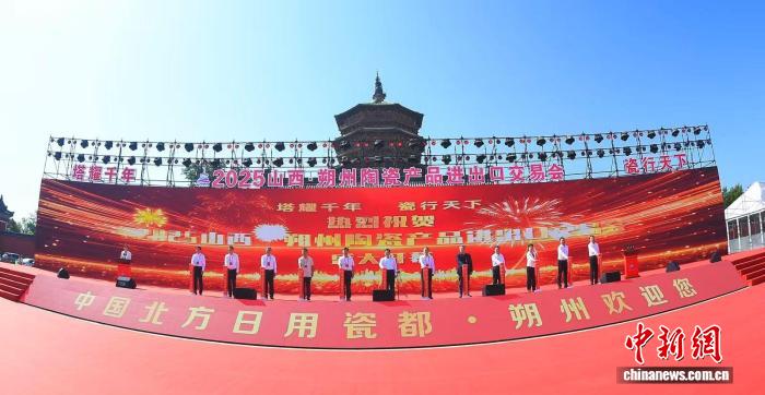 中新网朔州8月25日电 (杨佩佩 杨静)25日,2025山西·朔州陶瓷产品进出口交易会(简称“陶瓷交易会”)在中国现存最古老、最高的木构塔式建筑应县木塔下开幕。