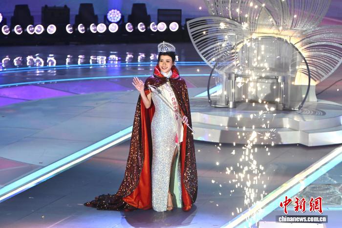 图为2025香港小姐竞选冠军获得者陈咏诗向现场观众挥手致谢。中新网记者 李志华 摄