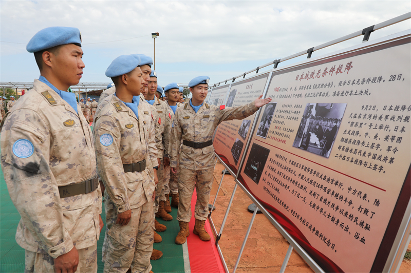 中国赴南苏丹(瓦乌)维和工兵分队举行中国人民抗日战争暨世界反法西斯战争胜利80周年纪念活动