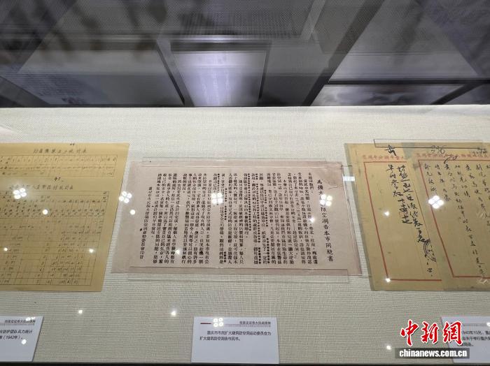 中新网重庆9月4日电 (记者 钟旖)记者4日从重庆市档案馆获悉,由该馆联合中共重庆市委党史研究室共同举办的“档案见证伟大抗战精神——重庆市纪念中国人民抗日战争暨世界反法西斯战争胜利80周年展”日前正式开展。