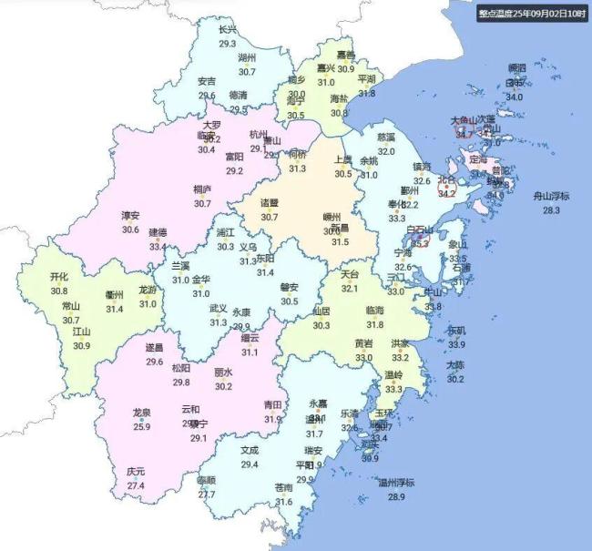 今天早晨全省多云,10时大部分地区气温在29-33℃之间。预计白天最高气温浙北北部地区为31-33℃,其他地区为34-36℃,这算是近期的一个低点。从雷达回波来看,湖州、杭州部分地区已出现短时强对流天气,局地雨量达到大雨到暴雨级别。午后可能还会再次发展更多,但时空分布不均,个别地区会有大暴雨和小冰雹出现,需警惕防范。
