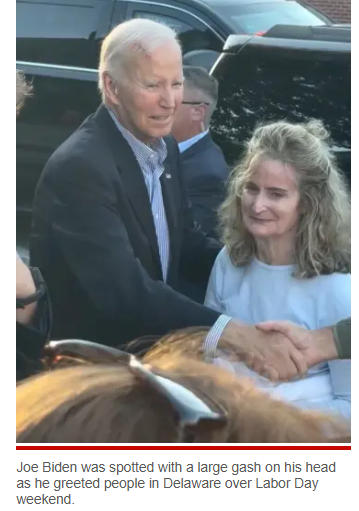 中新网9月5日电 据美国《纽约邮报》报道,当地时间4日,美国前总统拜登在特拉华州劳动节周末与人打招呼时,被拍到头部有一道巨大伤口,引发外界关注。