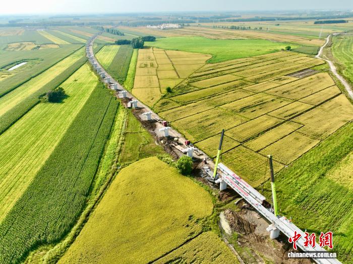 设计单位中铁第五勘察设计院考虑施工地点季节性冻土广泛分布的特点,增加桥梁结构的耐久性与经济性。同时,为节约中国重要商品粮基地——三江平原地区宝贵的黑土地资源,确定了“外绕城市+以桥代路”的设计方案,该段桥梁占比高达84%,大幅节约土地资源占用,将对三江平原的生态扰动降至最低。
