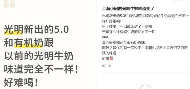 上海是光明乳业的“大本营”,但近期有上海网友表示,如今光明优倍5.0牛奶跟以前的味道有不小差异。