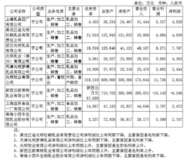 “趣解商业”注意到,毛利下滑的子公司里,就包括光明乳业2021年并购的青海小西牛生物乳业股份有限公司。