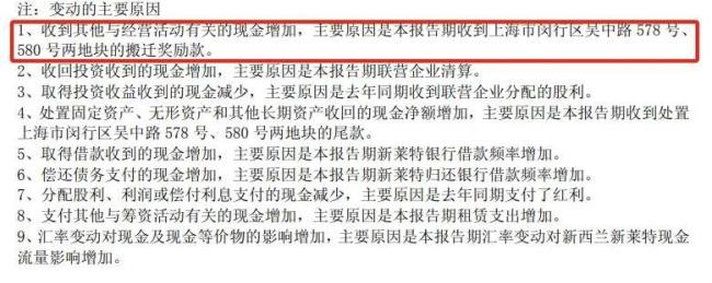 不过,今年上半年光明乳业经营活动产生的现金流量净额4.17亿元,同比大增82.28%;然而,现金流增长核心原因是“收到上海市闵行区吴中路578号、580号两地块的搬迁奖励款”。这是典型的非经常性收益,和乳制品生产销售的主营业务毫无关系。