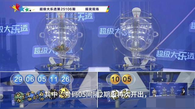 随着摇奖机滚动,本期的开奖号码揭晓:前区号码为05、06、11、26、29,后区号码为05、10。具体出号顺序为前区29、06、05、11、26,后区10、05。