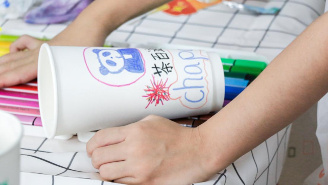 孩子在活动中绘制的奶茶杯