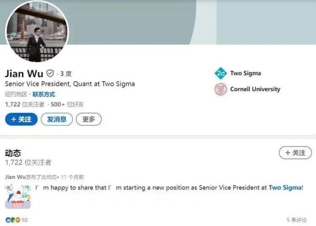 美国证券交易委员会表示,Two Sigma取消了吴舰在2021年和2022年的800万美元绩效奖金,但尚未收回他这些年累计的1780万美元现金奖金。Two Sigma于2024年解雇了吴舰,并赔偿了客户的损失。