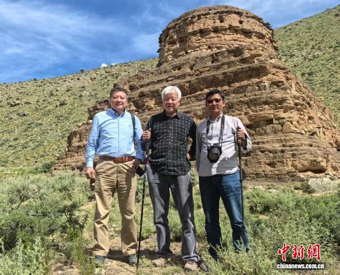 图为李永宪(中)与霍巍(左)、夏格旺堆(右)2025年在朗县列山吐蕃墓地调查中。受访者供图