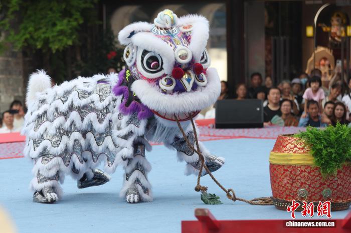 9月27日,在江苏南京举行的2025年世界华人狮王争霸赛传统南狮项目的比赛中,来自中国、新加坡、南非、美国等国家的参赛队伍轮番登台展绝活。图为新加坡九仙宫体育会的成员在比赛中。中新社记者 泱波 摄