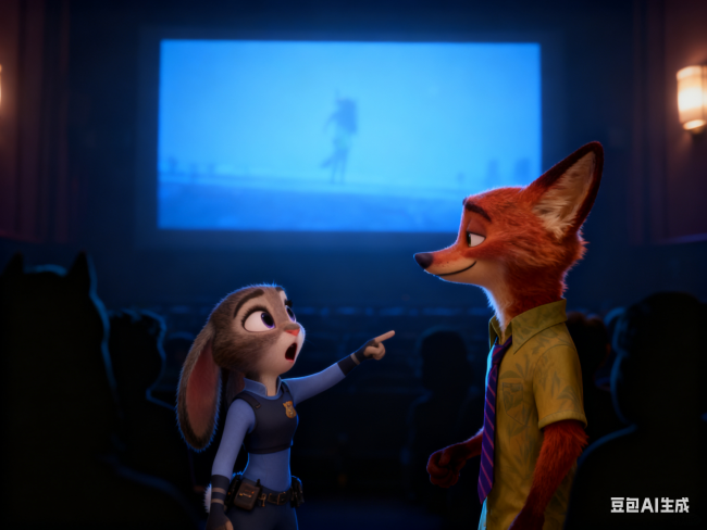 很多人来电影院打卡,用豆包将朱迪和尼克P到自己身边,这样的氛围图发到朋友圈后,马上就能吸引更多人,不由自主走进电影院。