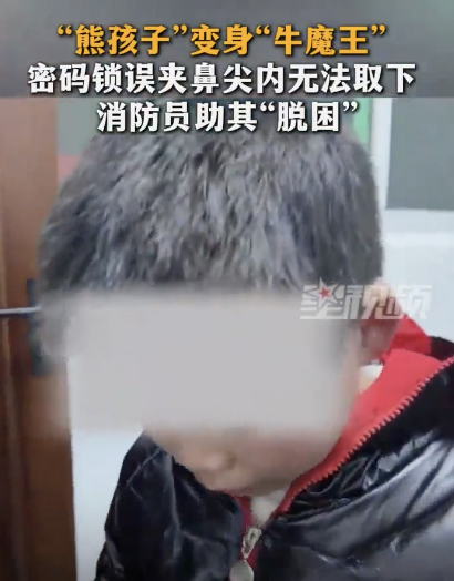 小孩用密码“锁”鼻 消防员:还玩吗